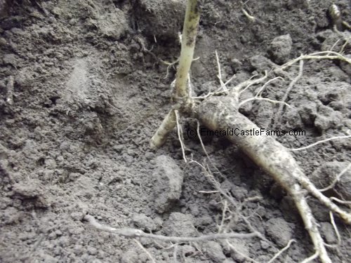 The following set of pictures shows the same process described above. This root has a very long, fine root growing just under the surface of the ground, and a tap root which grows straight down.