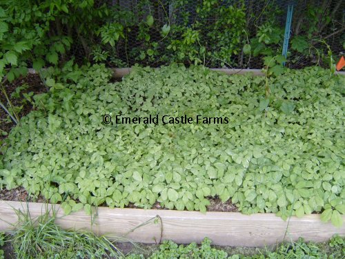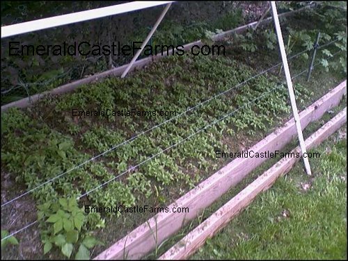 Before your ginseng starts to come up the next spring, you should have some sort of shade ready to go. This was an experimental bed and I tried 3/4" plastic piping to create the framework for the shade. I just cut the pipe into five foot sections, then cut some small pieces about two inches long to use between the tees that hold fit onto the legs. Put them together without glue and they are easy to take down and up again. I put a small piece between two tees, and then attached two five foot pieces for the legs in an upside down V shape. After you get several sets of legs together, attach them along the top (the point) with five foot pieces. Simple isn't it? In this case, I also added some cross members to stiffen the legs and to put another horizontal piece in front to hold the camo netting away and shade the plants better. Then, I used military surplus camo netting for the shade. I've had good luck using this type of netting, but it does become brittle and less usable after a few years. Its advantage is that it is relatively cost effective for small amounts. You can cut and zip tie it back together as needed. And, you can buy it on Ebay. Just zip tie it to your frame and leave one side lose so you can roll it up and get to your beds.