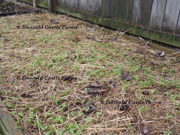 I took those pictures and wrote this article on the 30th of April. The seedlings in that bed had been coming up slowly (we had some very cool weather here) for about a week. Well, it is now the 16th of May and they are mostly up. This will give you a better idea of how good the germination really was in this bed despite mice, chickens and such for a year.