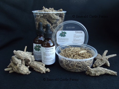 | Welcome to the Emerald Castle Farms Ginseng Products page. This page has to do with products intended to be consumed, rather than transplanted and grown. If you are looking for rootlets for transplanting, please visit the Ginseng Rootlet page or, you can visit our Ginseng Seed page if you are looking for high quality ginseng seed for fall planting. |